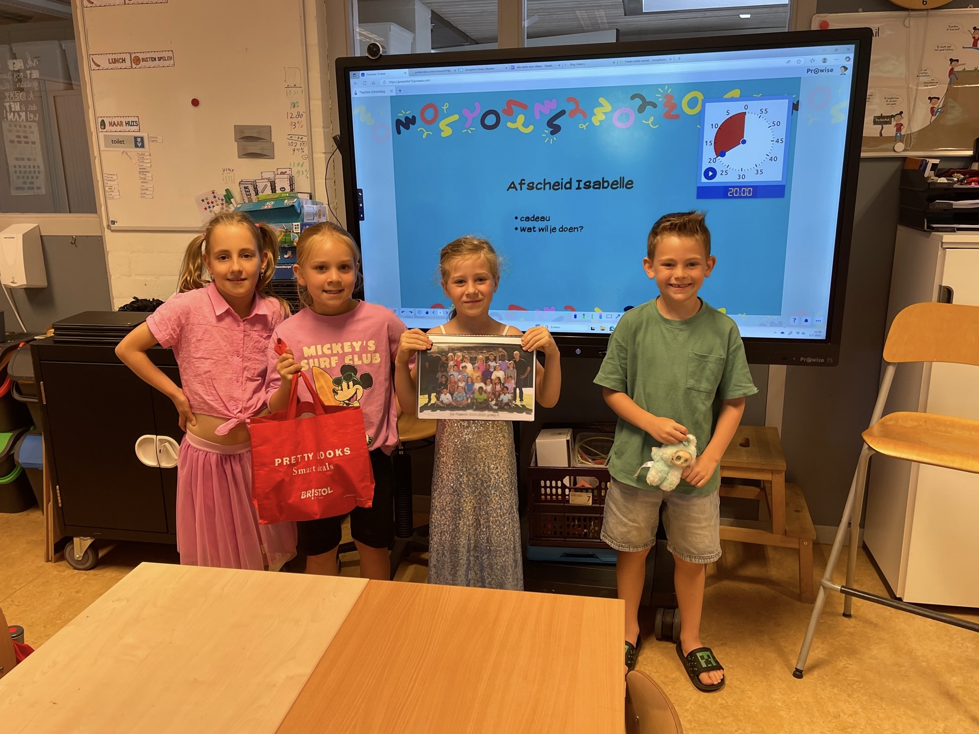 En Alex zat nog maar even in groep 1 en moet al weg en zat er nog niet eens een halfjaar op dus dat vind ik niet leuk maar ik ga ook heel veel kinderen missen en ouders maar ik ga ook juf Erika en juf Sharon missen.