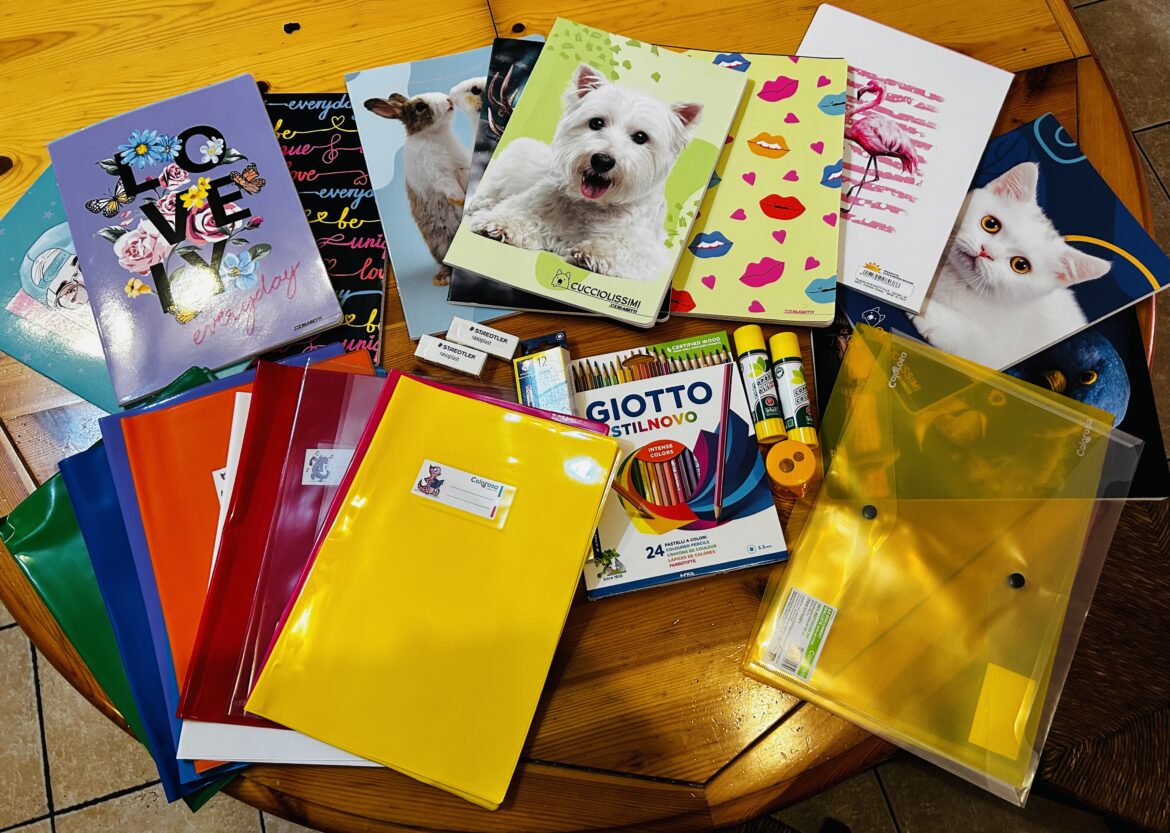 It was very different in the school than in the Netherlands. The tables are different and if you get something, for example, the other class will also get exactly the same (for example, we all got balloon flowers on the first day!) just maybe not the same color. It’s a lot of fun and they are very sweet. They are Italian books. I only read one with the whole class and then the teacher started translating the book into English, just for me! They were all super sweet. And you can use someone else’s stuff that you have bought so then you can use all things from other children.. they are suddenly yours because then they just put it in the closet and then you don’t know which ones are yours anymore and you just get something.
