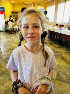 Na mijn eerste dag school gingen we naar een verjaardagsfeestje. We mochten suikerspinnen, je had een hele snack tafel, je had drinken en je had popcorn. Het was heel leuk!
