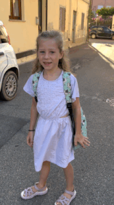Het was heel anders in de school dan in Nederland. De tafels staan anders en als jij bijvoorbeeld iets krijgt dan krijgt de andere klas ook precies hetzelfde (bijvoorbeeld, wij hebben allemaal ballon bloemen gekregen op de eerste dag!) alleen misschien niet dezelfde kleur. Het is heel leuk en ze zijn heel lief. Het zijn Italiaanse boeken. Ik heb er nog maar één gelezen met de hele klas en toen ging de juf het boek in het Engels vertalen, alleen maar voor mij! Ze waren allemaal super lief. En je mag iemand anders spullen gebruiken die je gekocht hebt dus dan mag je allemaal dingen van anderen kinderen gebruiken.. ze zijn dan opeens van jou want dan leggen ze het gewoon In de kast en dan weet je niet meer welke van jou zijn en krijg je gewoon iets.